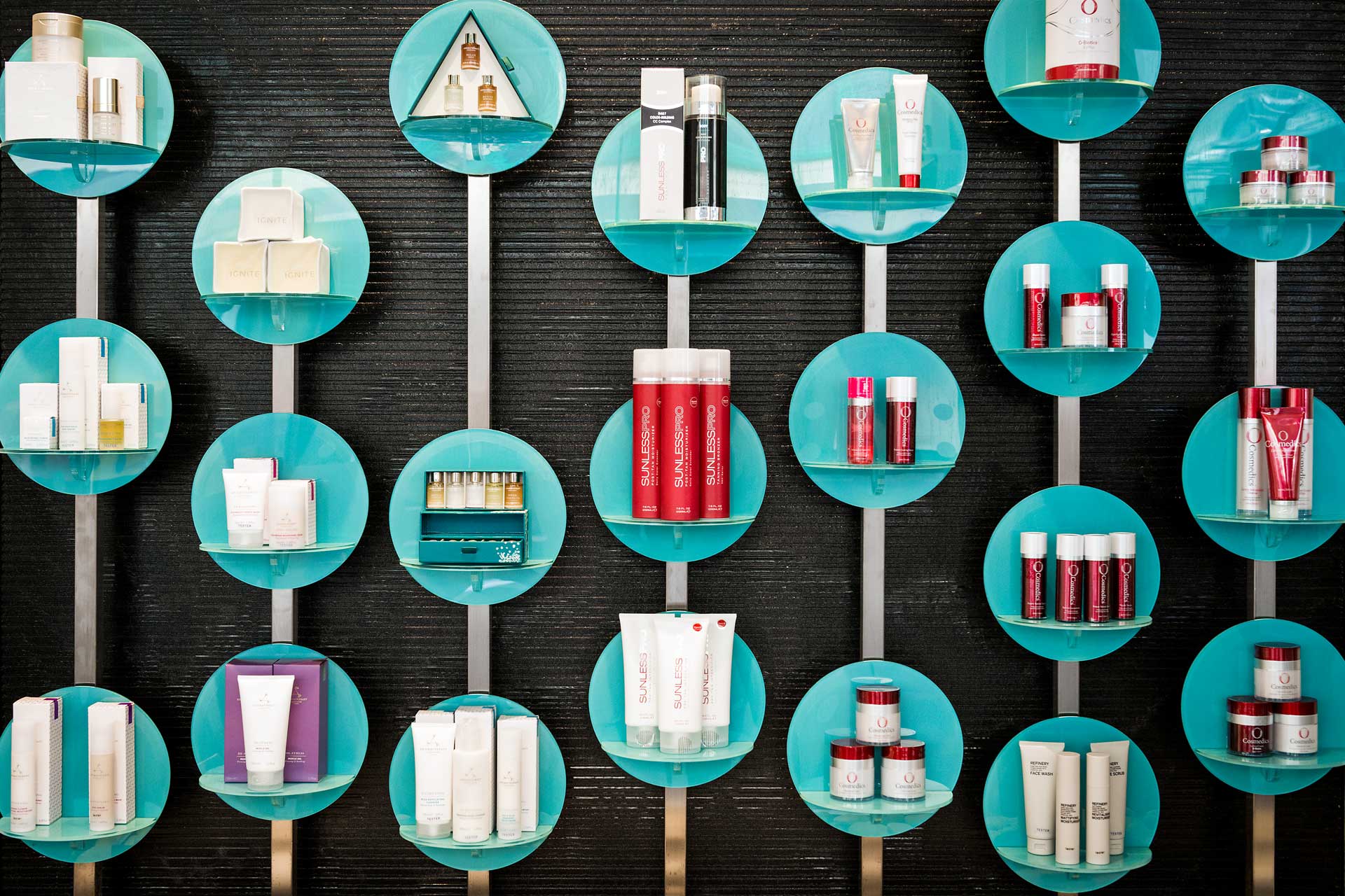 This was a dream job for a designer. We created the logo and all brand elements and then applied them to the spa exterior and interior environment. Ellipse worked closely with the shopfitters and architects to achieve a unified brand experience for the customer.